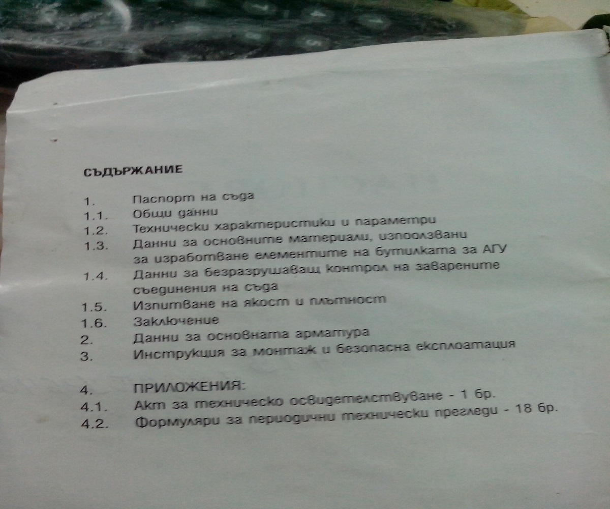 Паспорта именно касае бутилката и тестовете и,моя е от старите все още и приложение 4.2. може да е отпаднало/за прегледите/,но 4.1 не е.Всъщност и 4.2 не би трябвало,там са и тестовете за хидравлично изпитание.