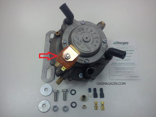 Електрическите изпарители имат по два клапана - единия е на самия изпарител, другия преди него. Може да е монтиран непосредствено на входа на изпарителя, може и да е отделно. Този е с едно краче защото масата е директно към корпуса.