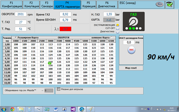 Днес се прибирах от София към Бургас по магистралата. Все още не съм пипал по картата, но си наснимах показанията при определена скорост. Ефекта с тази настройка е 25,49л газ (заредени на изхода на София на Лукойл), изминати 283 км при скорост 100км/ч на темпомат - 9,01л/100км.