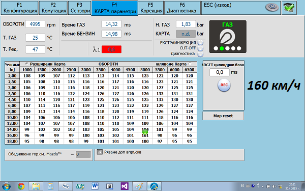 А това е новата ми карта. При мен работи на 1,3-1,4bar, а при колегата беше на 1,53-1,6.