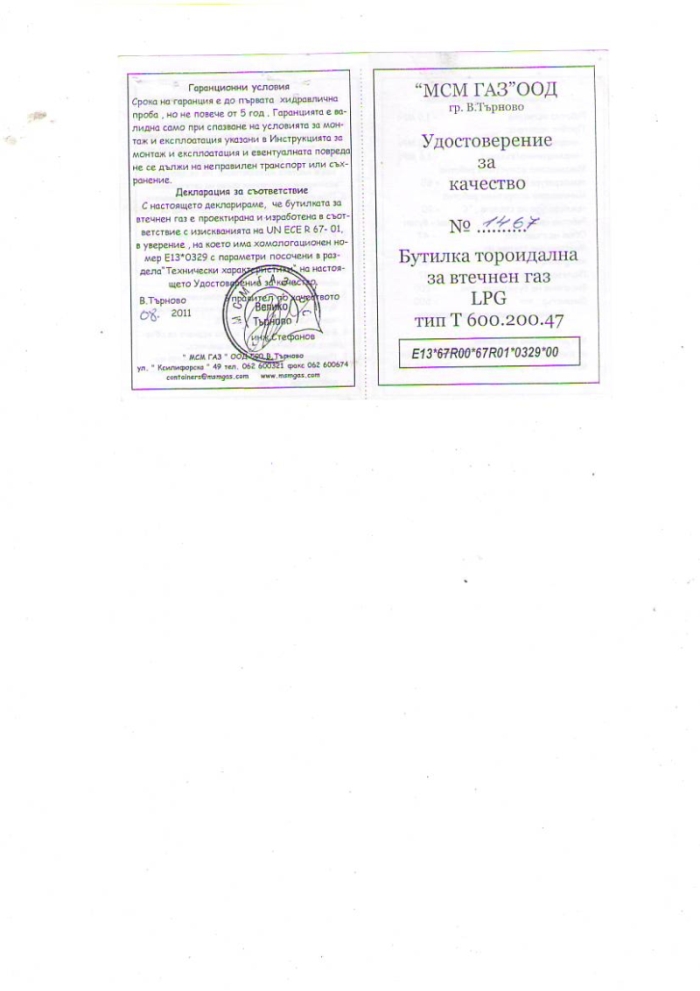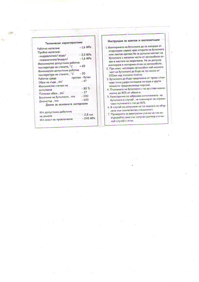 Паспорт на бутилка за втечнен газ