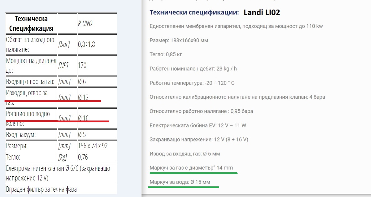 rld написа:В България - 200 лв е изпарител Landi LI02, което е абсурдно. Този R-UNO ще го видя какви са му диаметрите на изхода и входа на газта и водата