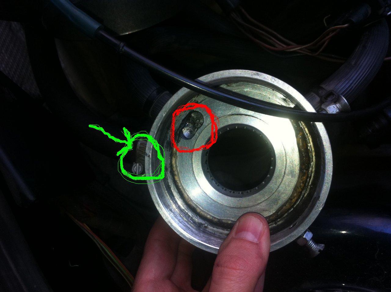 Със зеленото ли е тръбичката на МПХ и ограденото в червено какво е - дупка пробита в смеситела? Да не е точно тва маркуча за празния ход и дупка от където смуче?