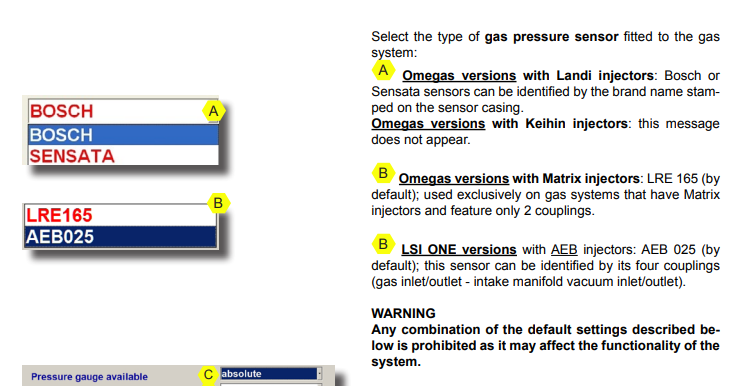 Тук става дума, че след като промениш в програмата на Ланди, че инжекторите вече са Matrix, изчезва изобщо датчика за налягане - Bosch. Няма такъв в списъка. Мисля, че има някакво странно име от типа LRExxxx нещо си. Не съм сигурен, моля който го е правил скоро нека да сподели. Аз може да имам време уикенда да си направя една автоматична настройка и ще направя screenshot от програмата, за да видите как се промениха нещата поне при мен.