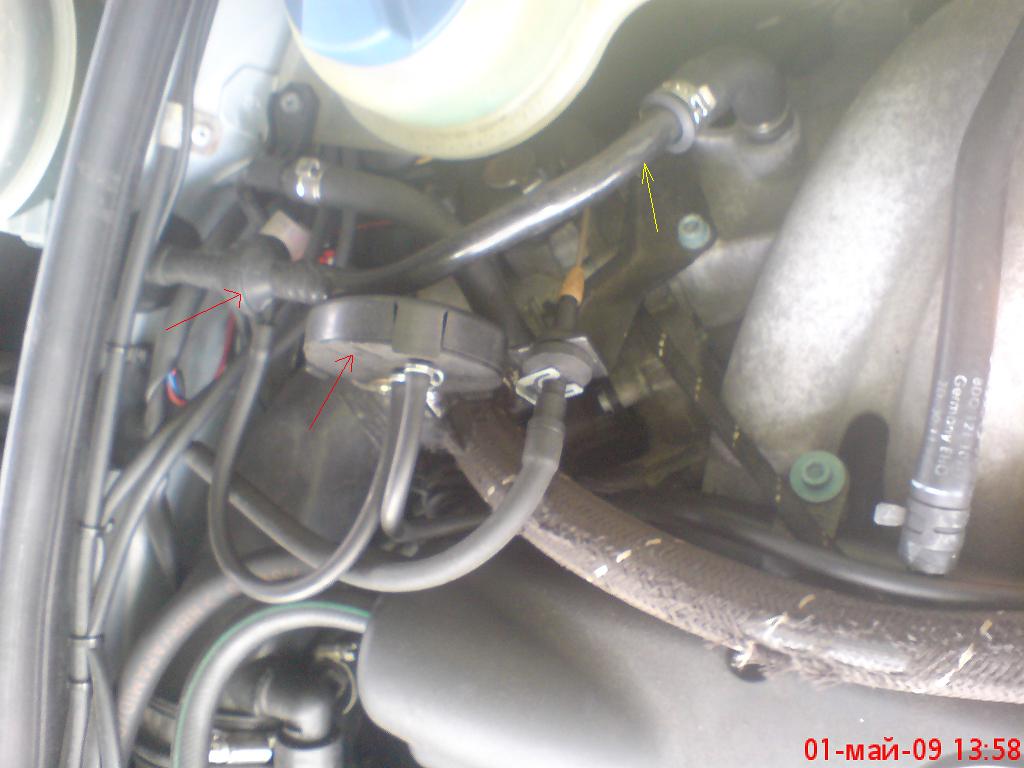 Те са на вакумния шланг и са скачени на вакума на сервоусилватвля на спирачките/ жълтата стрелка/. Надявам се, че съм бил полезен. Успех!