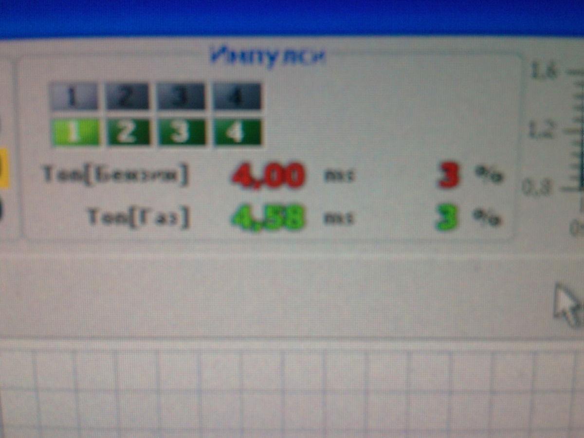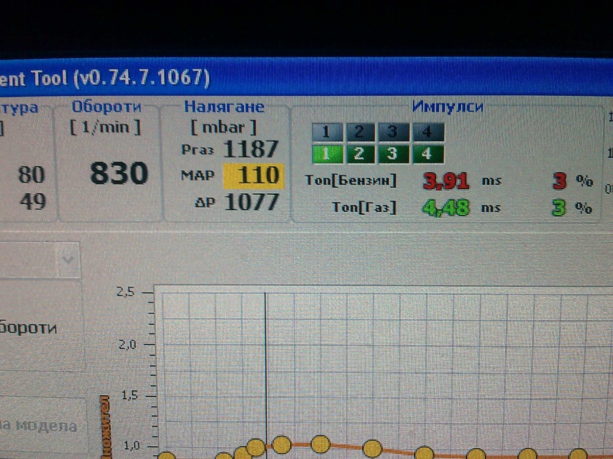 Колега, снимал съм графиката за да се видят инжекторните времена, не съм настройвал по графика, аз съм аматьор и за първи път правя настройка на ГИ.