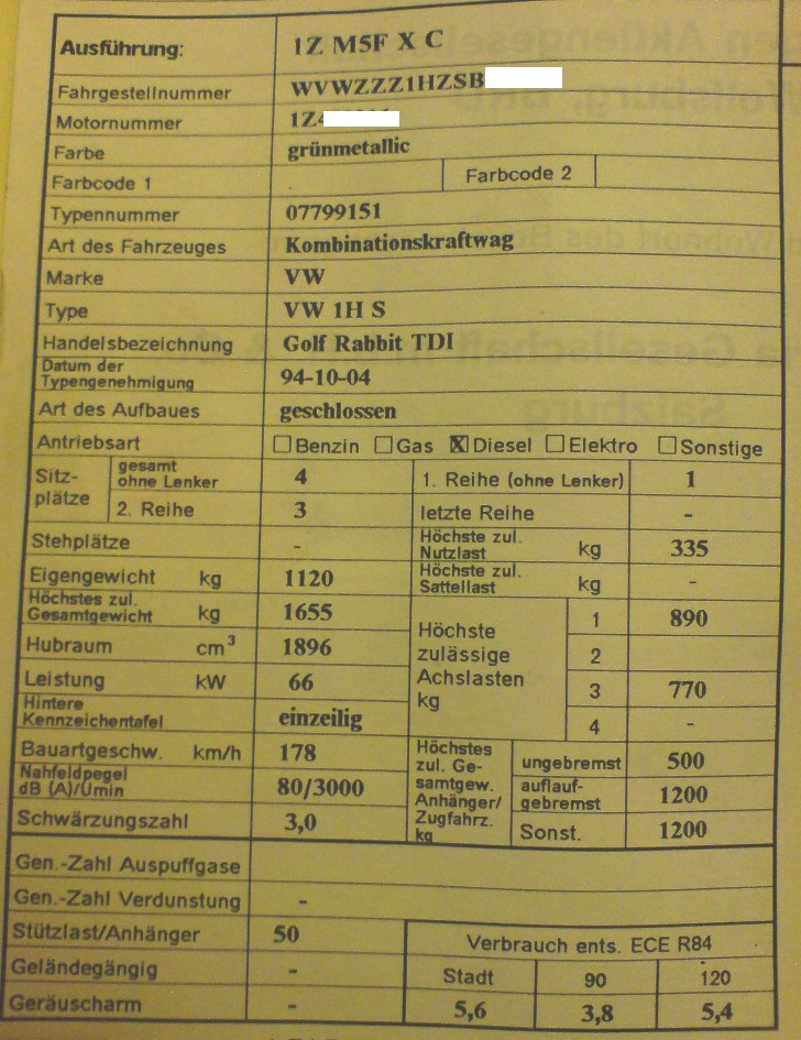 Aко някой има книжката Typenschein Vw Golf 3 с данните за Голф 3 с двигател AHU, ще го помоля да я качи за да се видят данните по заводски