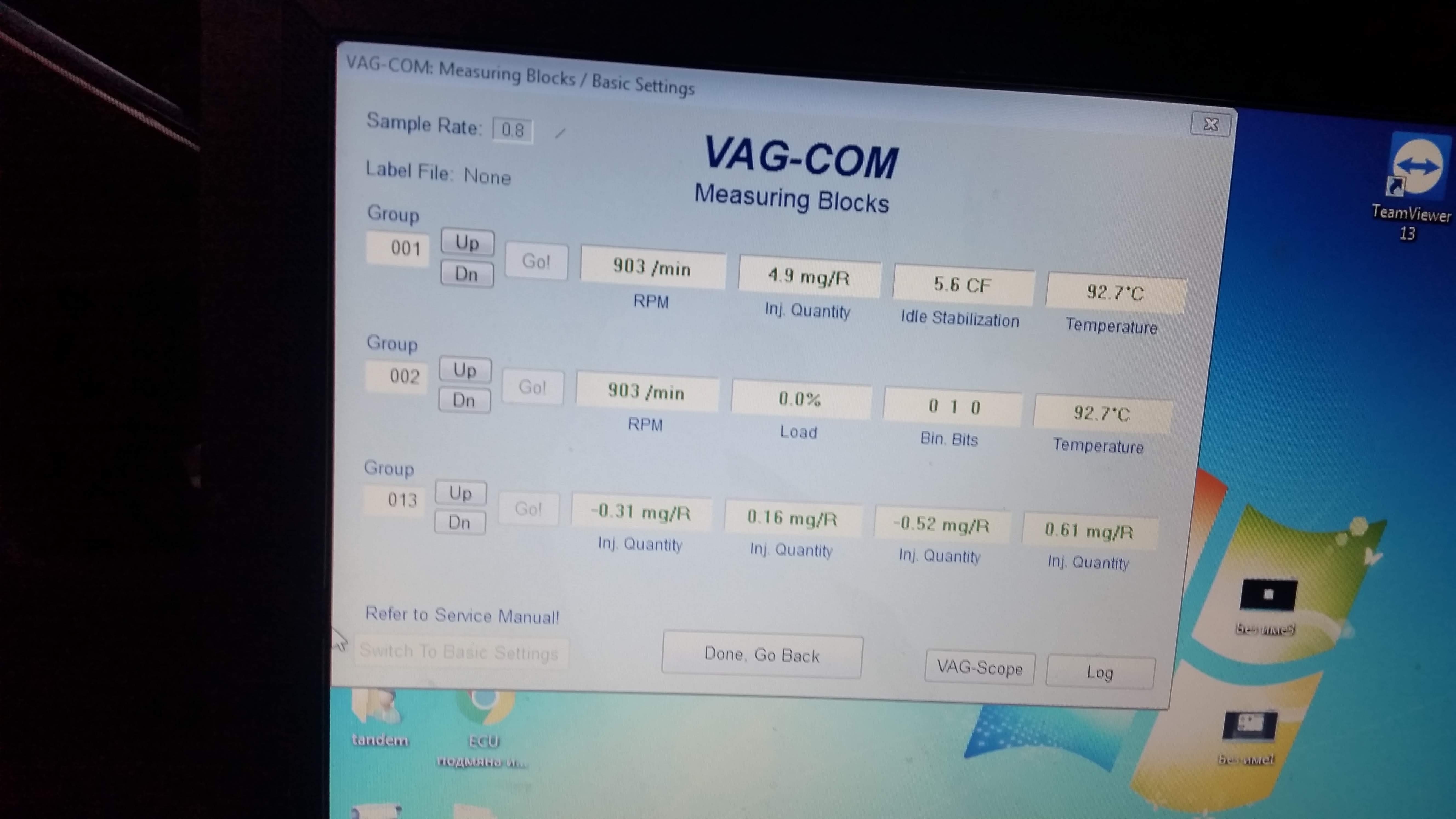 Чета , за оборотите моите са 903 на място и ми се струват високи. Прилагам снимка от VAG com , ако може някой да разчете стойностите. Колата пасат 131к.с avf