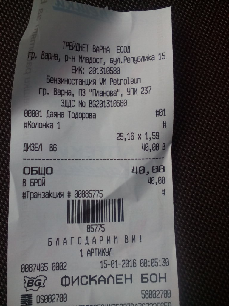 Kuncavia написа:Прясно от вчера и днес. Служебния ни камион сипа 200 л. обикновен дизел от OMV. Един колега зареди личната си кола също с обикновен дизел от OMV. Резултата при -16 вчера (21.01.2016 г), камиона не можеше да вдигне повече от 60, докато не се размрази изцяло нафтата, след близо 30 км. навъртени по Околовръстното. Колегата не е карал вчера, но днес на сравнително по-топла температура, за близо 5 км. каране и колата се бетонира на румънското...