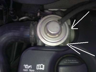 Отдолу точно под ЕГР-а има една тръба подобна на лула която отива в изпускателния колектор.