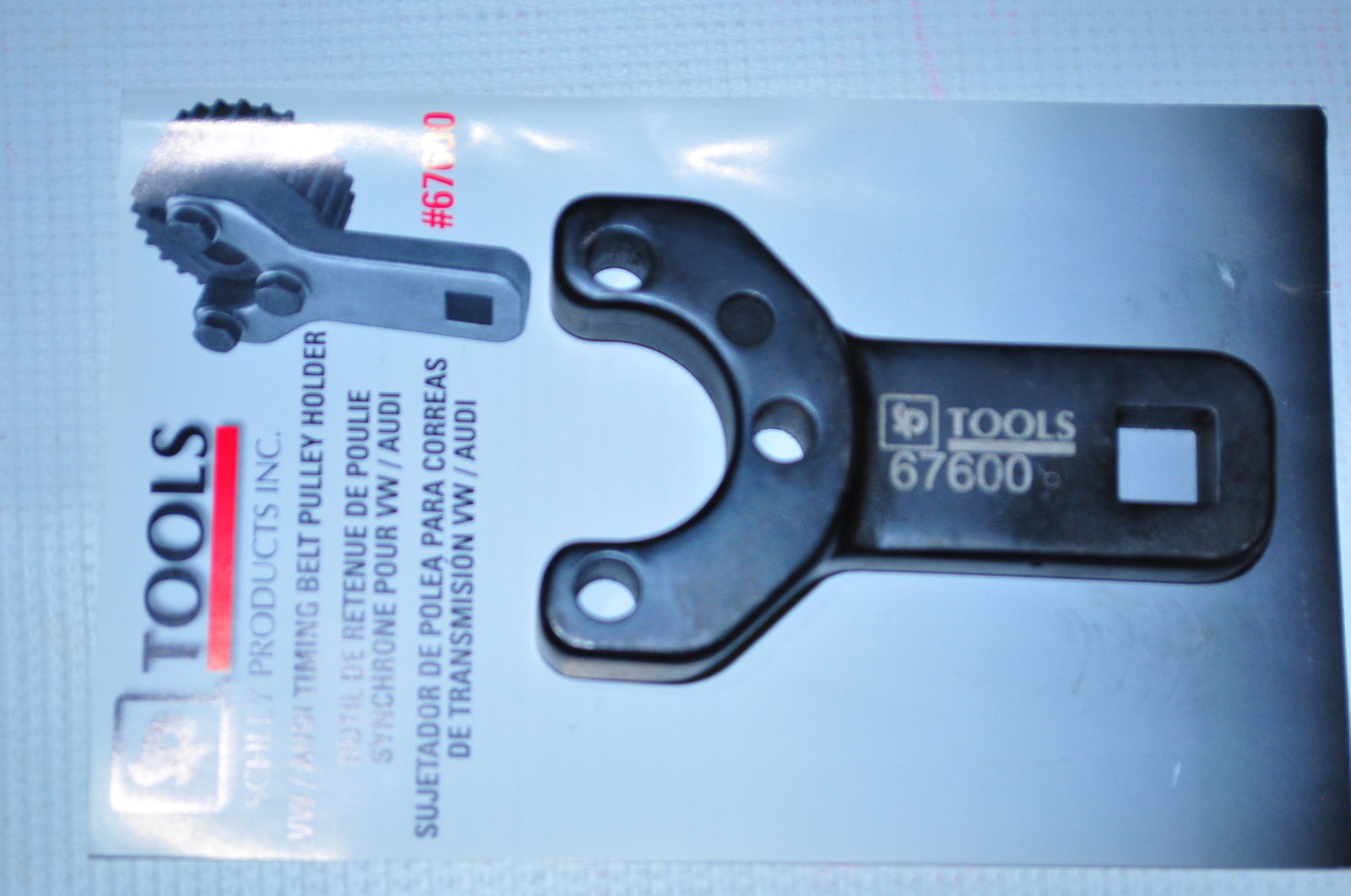 Диаметъра по който се фиксират шайбите за аксесоарните ремъци е 30 мм - значи освобожденуето в средата на ключа трябва да е поне 32 мм за да не се подбие колелото. Резбите са М8 разположени на окръжност с диаметър 46 мм - 4 бр. По същата окръжност, между две от резбите има една пъпка, затова на показания от теб ключ има глух отвор между два от проходните, за да не се подбие пъпката при стягането на приспособлението към колелото.