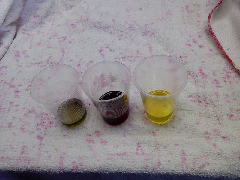 Тъмното масло би трябвало да е сменено в порше запад,светлото е новото,а малко по тъмното е сменено на дсг преди няколко дни?