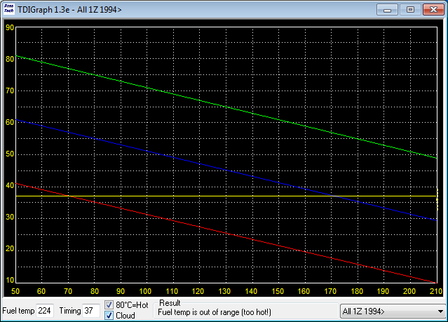 температурата на горивото ти е много голяма,затова графиката ти е навън.Най вероятно датчика за температура на горивото лъже.