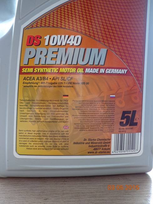 И още едно въпросче, при последното обслужване майстора ми тъкмо се беше върнал от Германия (редува 1 месец тук един там) и ми сложи някакво масло което беше донесъл от там, проблема е, че никога не съм го виждал/чувал това, ще помоля ако някой има инфо. за тази марка да каже, имали причина за безпокойство (колата се държи нормално с него).