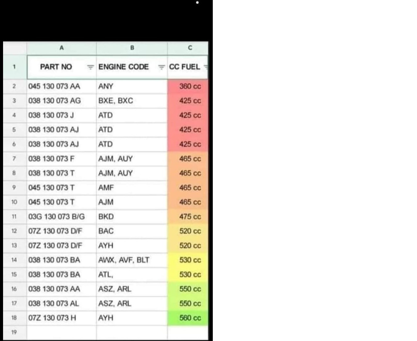 От любопитство набързо прерових за малко инфо . Имат разлики посочените дюзи ( AR , AL ) . " Наследника" на AR е 038 130 073 BA , на AL пък е 038 130 073 BX . Да си знаете де :smile