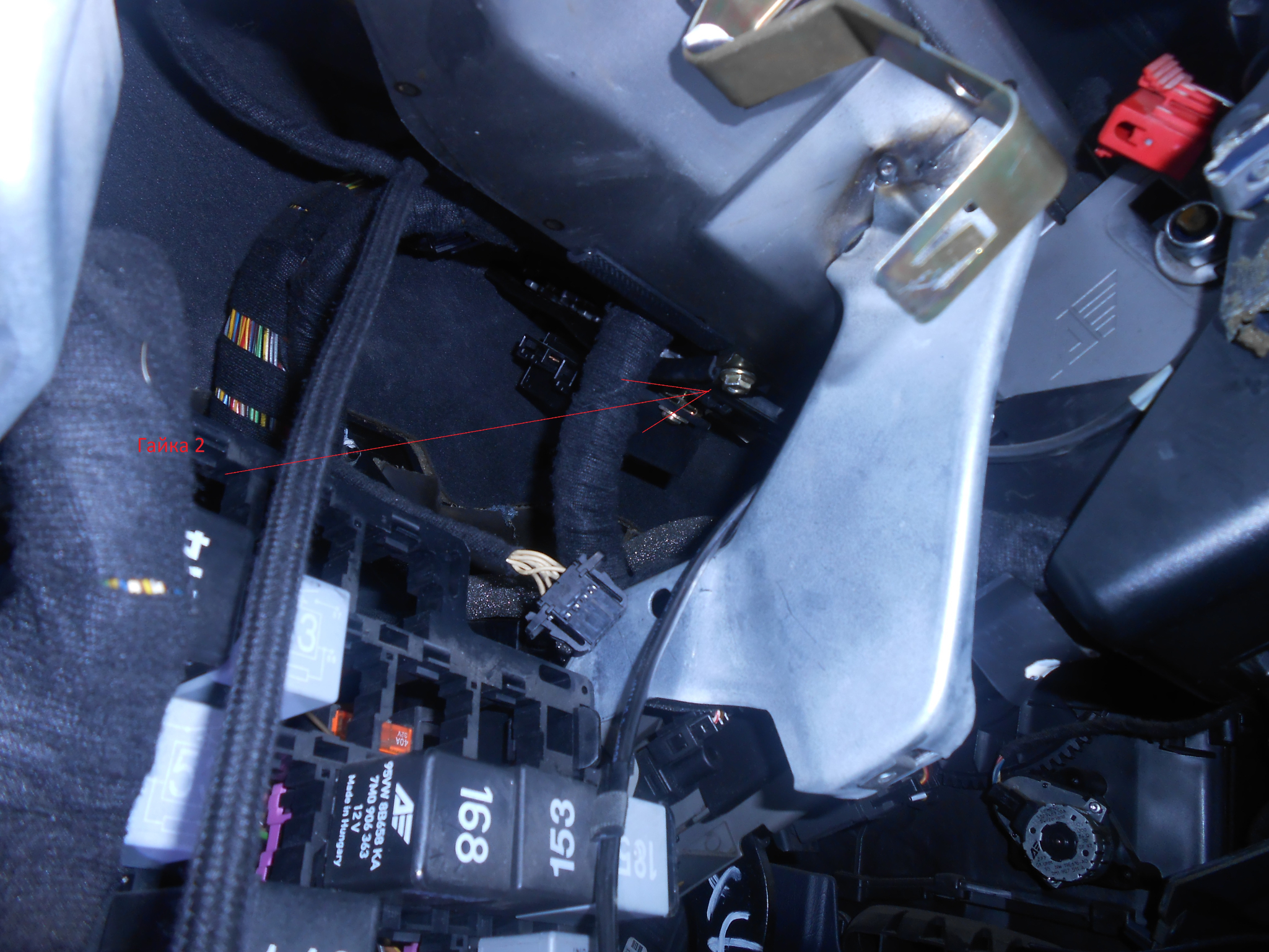 За демонтажа освен сваляне на уредите, свалих и кората под волана и разкачих бушонерата да увисне до пода за да има място за бъркане. Желязната планка на която