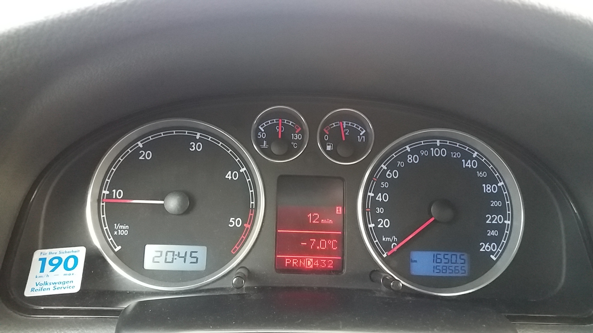 Снимката е на Пасат с двиг. AVF, направих я сутринта на 01.02. т.г., придвижвайки се към работа на един от сфетофарите. Колата не е гаражна. Температурата, отчетена на борда считам за вярна, сравнявал съм я с тази на два други автомобили на колеги с които паркираме на едно място(едно ауди и опел). Движението него ден не беше много натоварено, както обикновенно е в делничен ден(вероятно на късмет). Преди да направя снимката парното не съм го включвал, исках да разбера как загрява мотора.