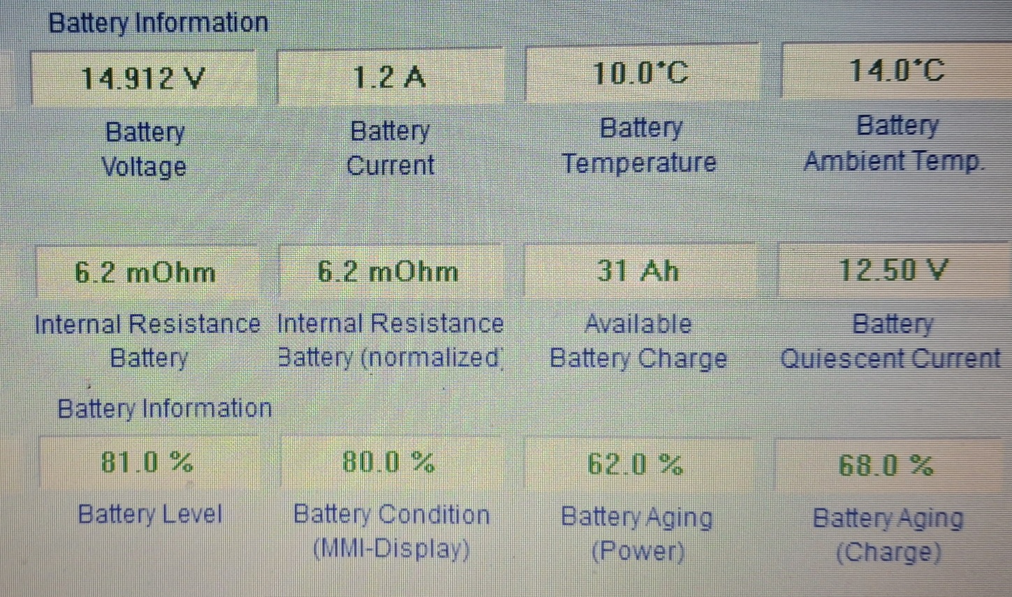 Намери си пак VCDS. В секция 61-Battery regul и смени номера на акумулатора. Така колата ще работи с нов акумулатор и ще оправи този за няколко дни. Аз си сменям номерата на акумулаторите 2 пъти в годината затова че колата ги убива состуерно. При мен номера на акумулатора е вече 068 VAO 1111111129.