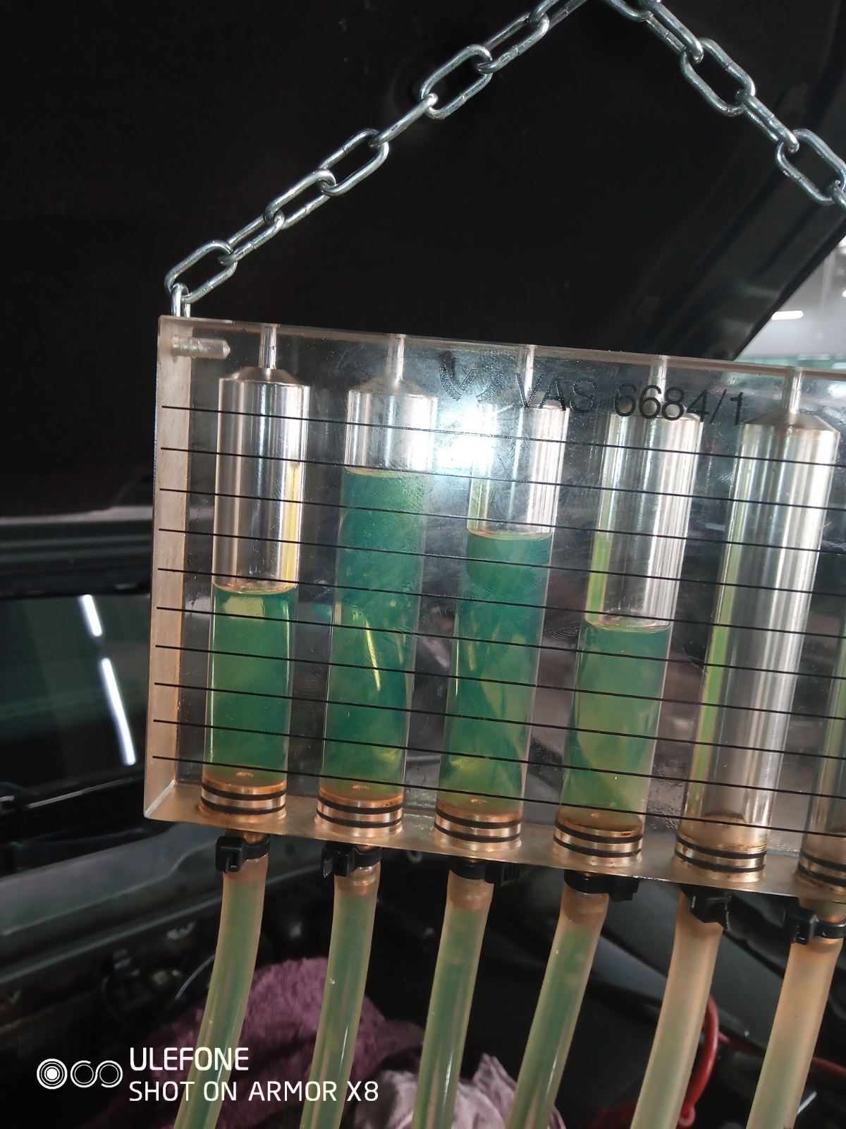 В нашия случай две от дюзите даваха подобни количества, както при двете най-пълни колби на колегата и понеже клиента плащаше ремонта сменихме само две дюзи. Проблема се оправи. Новите дюзи за една минута дават толкова обратна нафта, колкото да напълнят маркучетата и колбичката до първото деление.