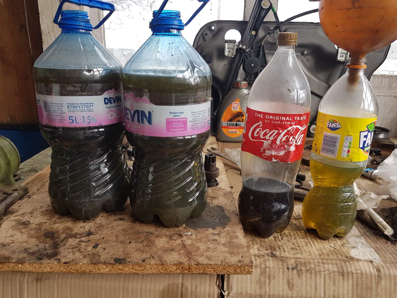 ТОВА В ГОЛЕМИТЕ ТУБИ Е НАФТА. Подкачащата помпа е умряла от тази гадост. Сипвам само от голяма верига на родния пазар, не съм сигурен дали е ОК да кажа коя е. Ще изчакам да ми кажете, дали мога да споделя с вас коя е веригата. Следващите са горяло масло и чист дизел, за сравнение. Дано да съм един от малкото прецакали се така.