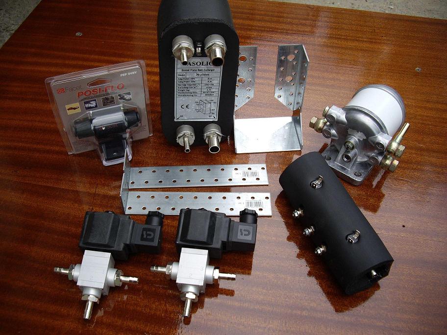 клапани за антифриз, защото са с по-голямо сечение. подгревните свещи ми ги прави стругар, но знам че има Голфове с такива свещи на антифриза. маркуча е масло устойчив. Проблема е само помпата до резервара. тя трябва да е ЕЛЕКТРОМАГНИТНА. Това не е обикновенна помпа а такава която работи на импулси, зада спре като вдигне налягане.