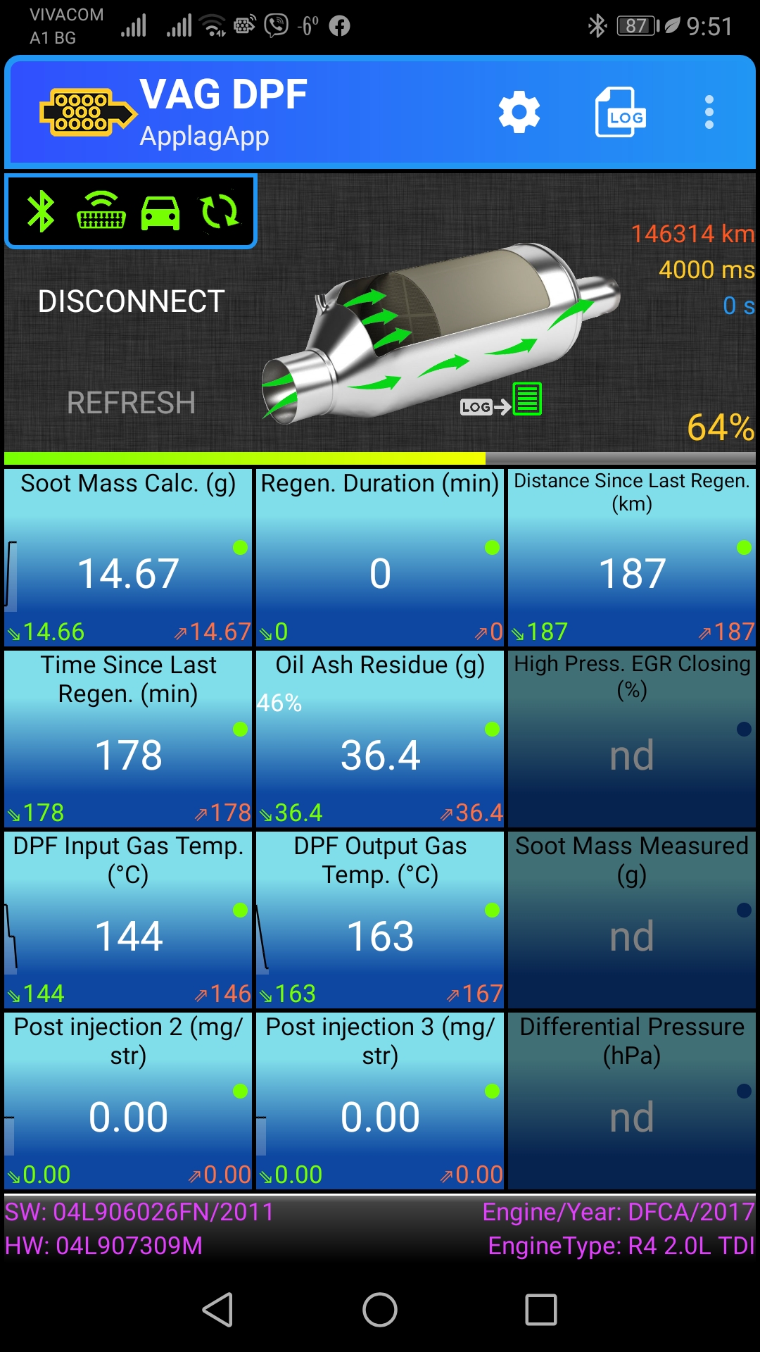 EGR - а никога не ми го е показвало, soot level-a i differential pressure спря да ми ги показва след последната регенерация.