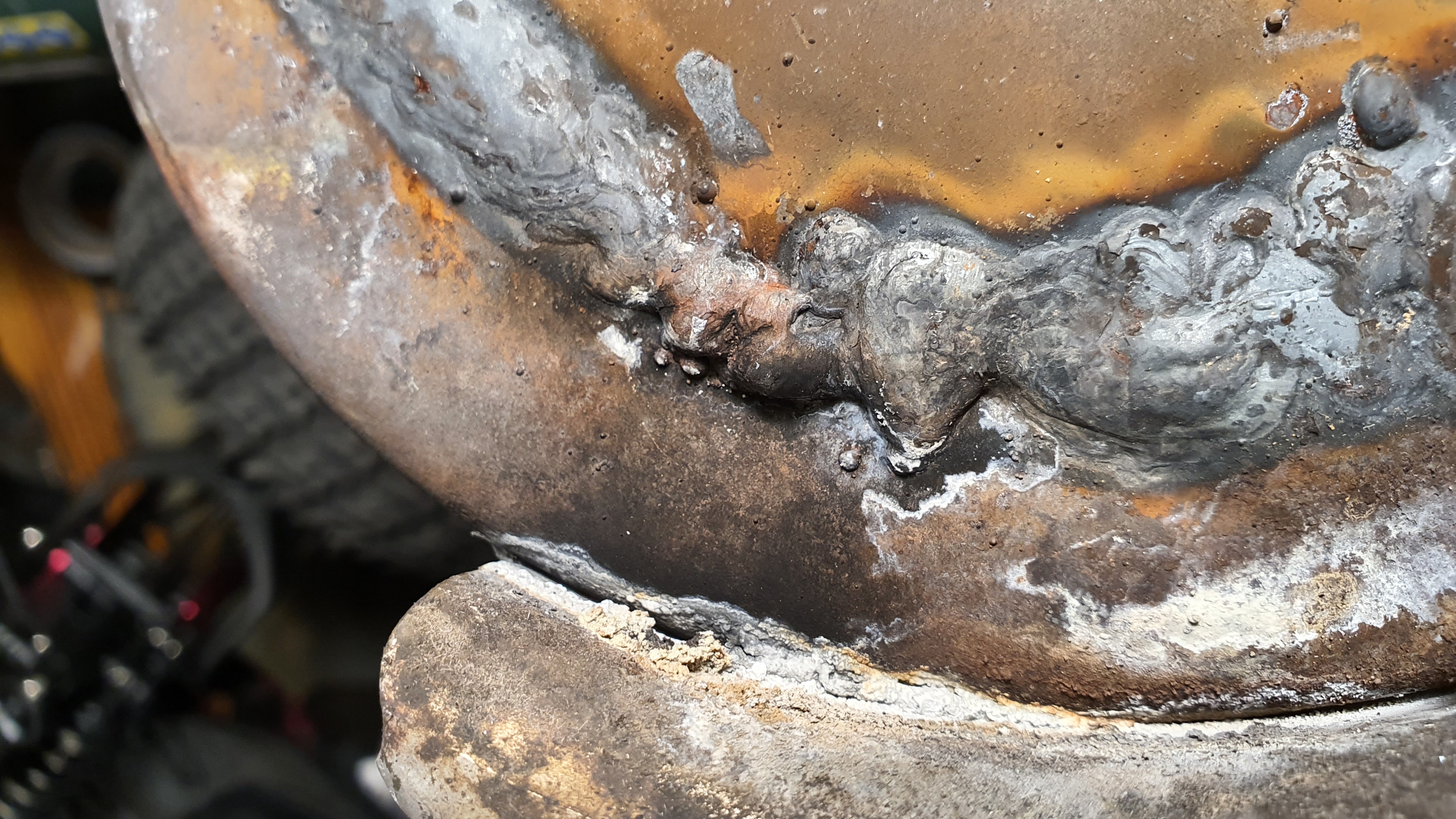 Гледате разрязан брутално дпф за почистване. Заварен по също толкова некадърен начин, че да изспуска заварката.
