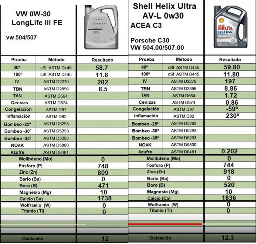 La Taberna del Motor публикува анализ на ORIGINAL VW Oil 0w30 LongLife III FE 504/507, което на мен много ми прилича на Shell Helix Ultra AV-L 0w30