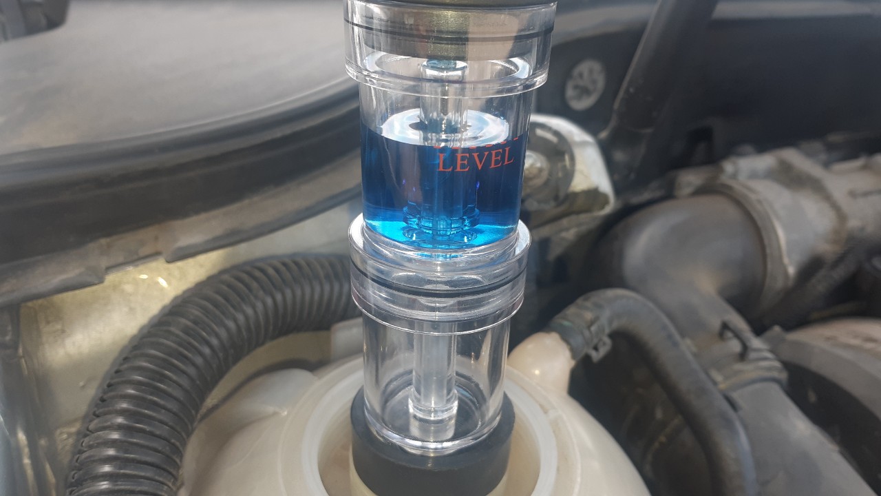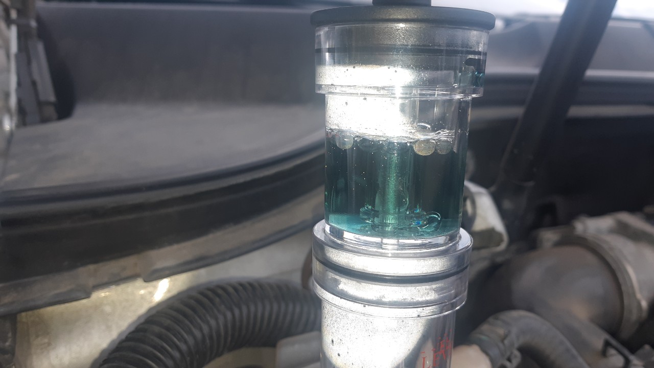 Здравей колега, предлагам ти да направиш следното преди да се хвърляш на скъпи операции. Първо си замери на каква температура ти е антифриза ако нямаш уредче иди в някой сервиз там със сигурност имат, може изобщо и да не ти вземат пари за това, елементарно е. Принципно твърде гъст антифриз може да дава проблеми с известно повишаване на температурата, за нашите ширини е препоръчително антифриза да е в границите -25 до - 30 градуса. При теб едва ли това е проблема, но е хубаво да знаеш на колко е и да си го регулираш при всяко положение. Второ направи проверка за изгорели газове в антифриза, има доста сервизи, които могат да го направят, не е сложно и кой знае колко скъпо (виж снимките по-долу), така ще се разбере дали проблема не идва от гарнитура на глава (Не искам да съм скептик, но ми се струва, че това е проблема). Ако не е е от това отиваш на термостати, принципно е хубаво да се подменят периодично.