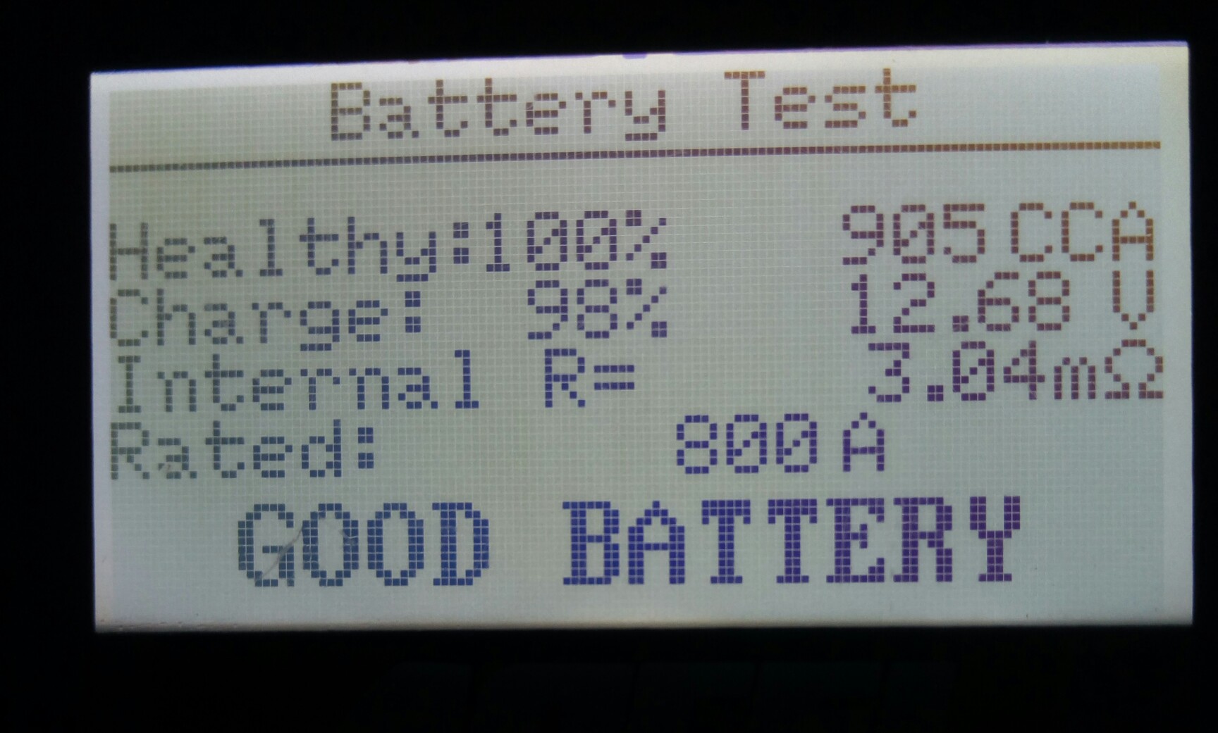 Измерване с тестер, много добър стартов ток, но акумулатора е леко разреден, вероятно от престоя в склада.