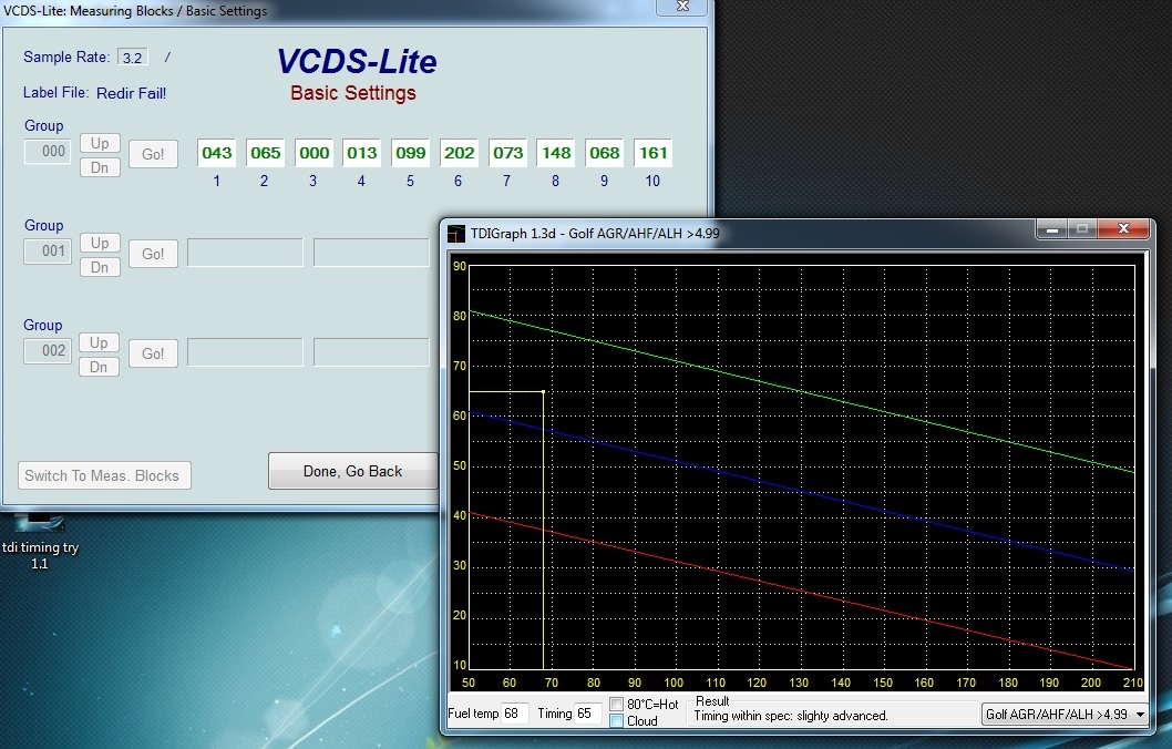 На 4-ти канал, там дето ти пише 1,8 BTDC, да стане минимум 3. Обаче, се разхлабват три болта на зъбното колело на помпата и колелото се мести много финно. След това палиш, гледаш, ако трябва коригираш пак. Назад в темата е обяснено, да не се повтаряме.