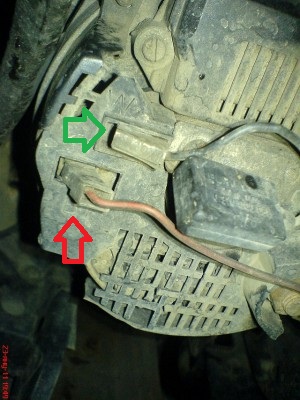 Кабелът посочен със червената стрелка трябва да отиде на мястото на кабела посочен със зелената