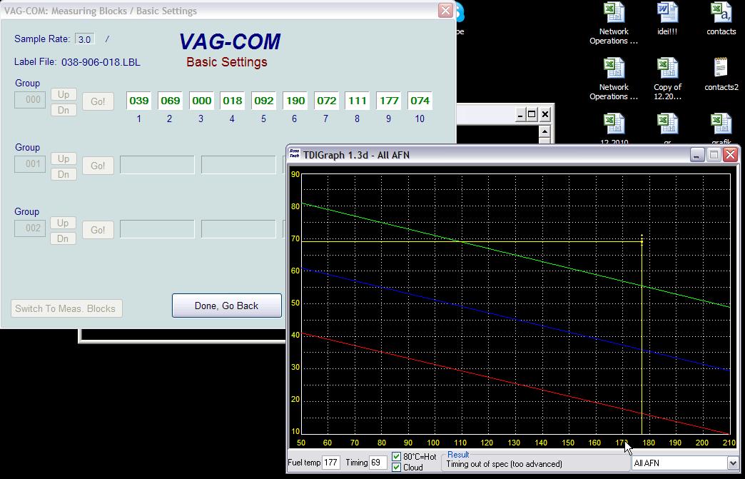 Най добре направи една снимка на графиката за да видим как изглежда защото може да си я правил на недостатъчно загрял двигател.При теб автоматичното предварение е почти на максимум (85%) и възможностите за дорегулиране са мн.малки.