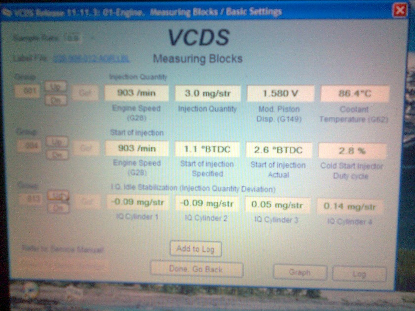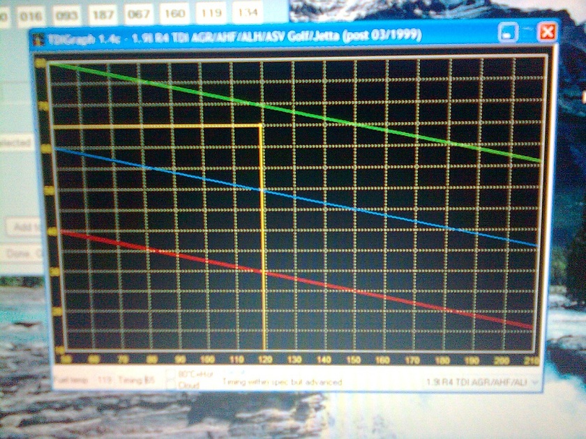 Миналата година след смяна на ангренажния ремък и ролките ,центровката беше нагласена малко на предварение и показанията на ваг ком варираха близо до зелената черта,а стойностите който се виждаха бяха - 55-62....