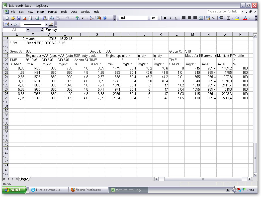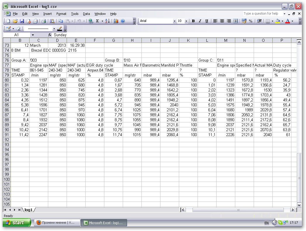 Дайте мнение за проблема и кажете защо % се изменят и защо на трети цилиндър се изменя толкова много стойността и въобще добри ли са тези стойности?