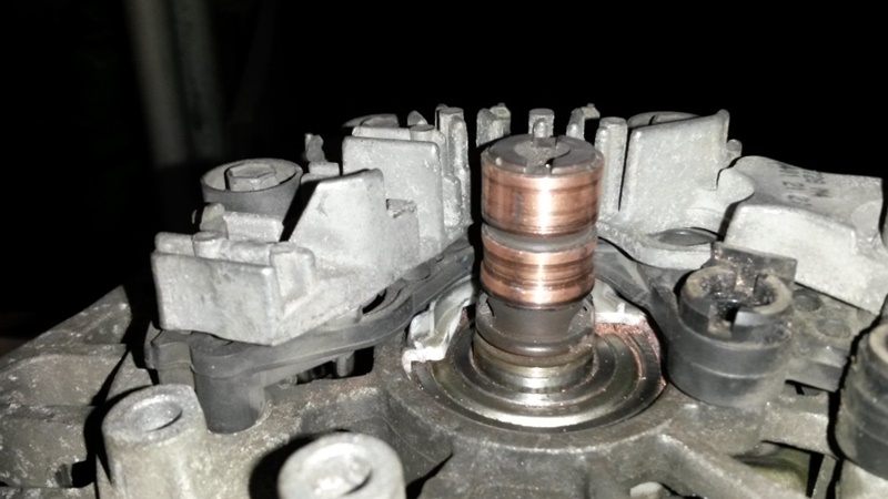 . Отново в гаража преглед на всичко и отново демонтаж на генератора.Махнах отново капачката и какво да видя при запояването от майстора на диодния изправител една от намотките се беше разполила .