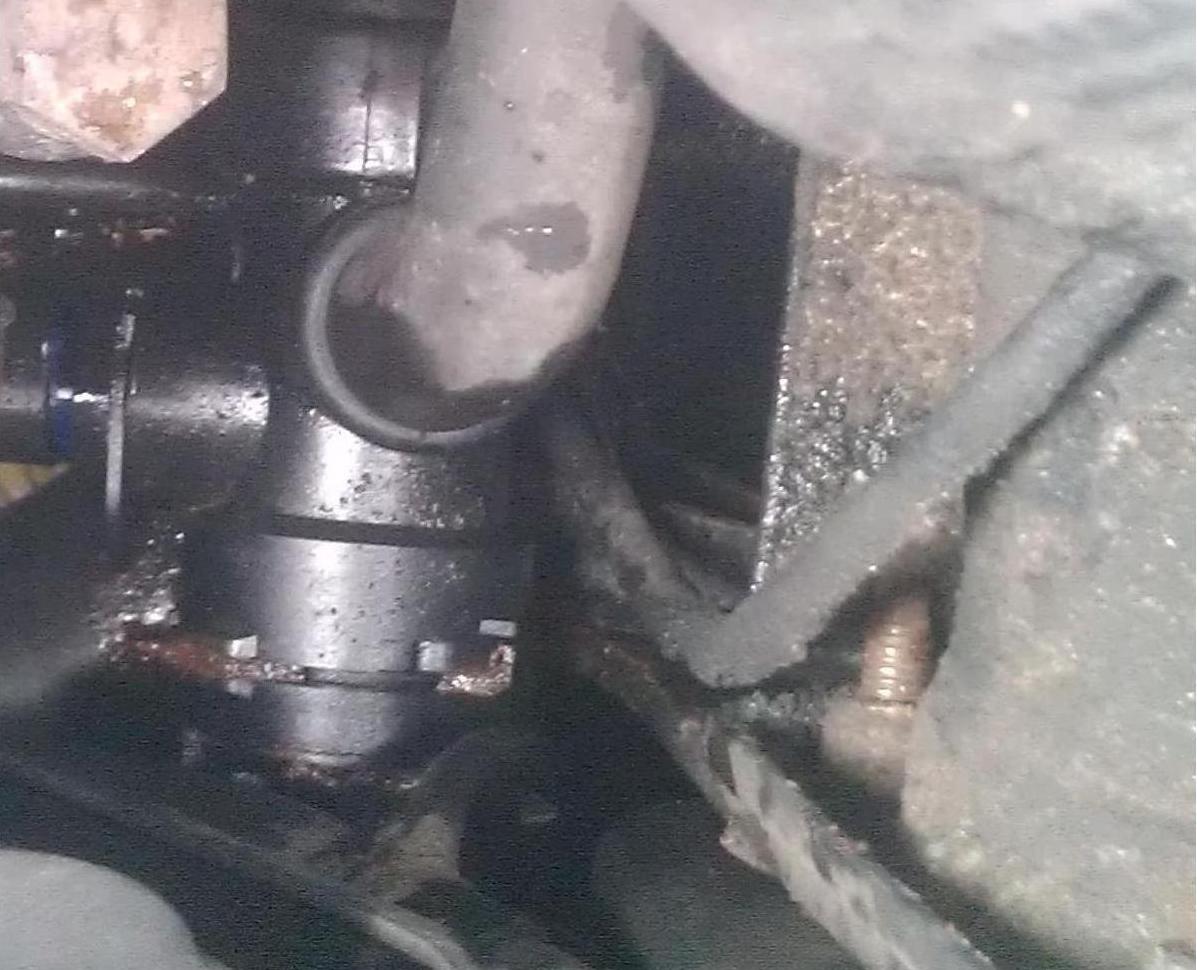 Долния щтутцер се измъкнал от пластмасовия фланец защото пуржинната скоба е ръждясала и се е счупила. Верно е антична колата, ама никъде няма ръжда другаде и в доста добро съсотояние и много поддържана.