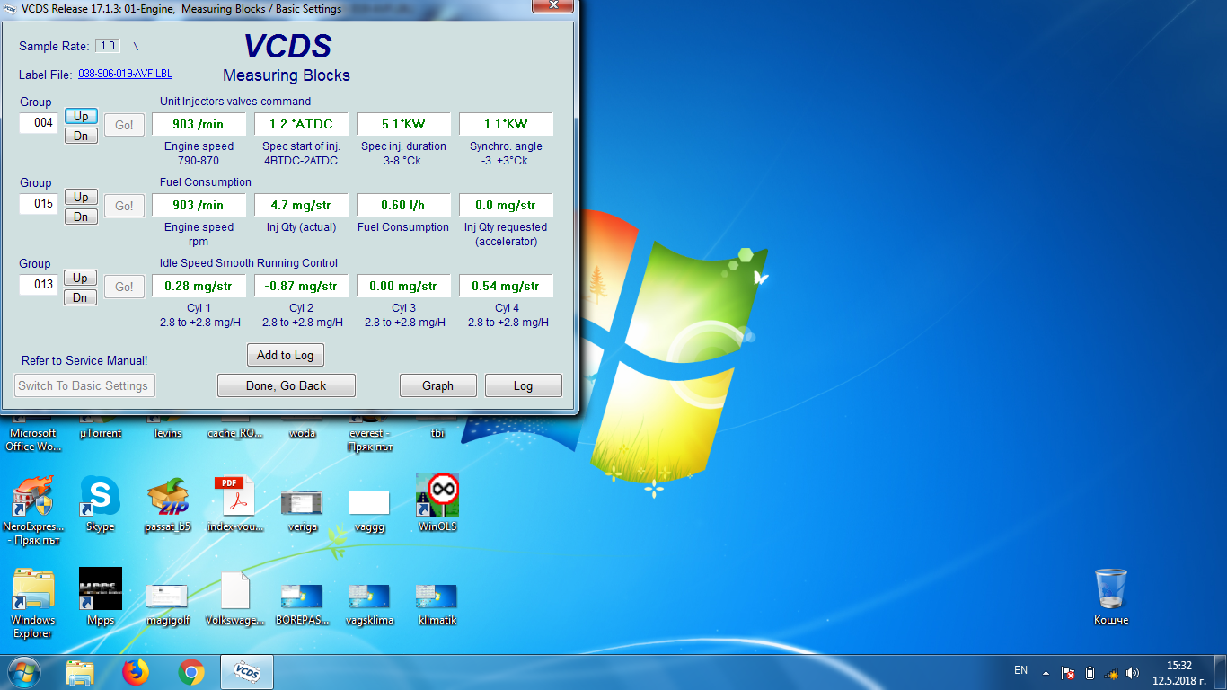 Здравейте,колата е Пасат 1,9 тди AVF проблема е че на празен ход ,особено при включен климатик има тресене .Преди 2 седмици са сменени уплътненията на дюзите комплект с болтовете.Подобрението е незначително.При първото палене изпушва синьо за момент и след 4-5 минути работа с ваг ком ми прави впечатление че 3 та дюза за момент показанията отиват на 1,20 но за 2 минути пада на 0,20.Прилагам 2 снимки с климатик включен и без него само втората дюза има бая отклонение но е в рамките до -1,20.Според двама майстори бил маховика,който имало вероятност и да е блокирал(забравих да отбележа че педала на съединителя е доста твърд и отделя доста високо и приритва преди да отдели).Забравих да отбележа че пипам педала на газта много леко и вибрацията изчезва.