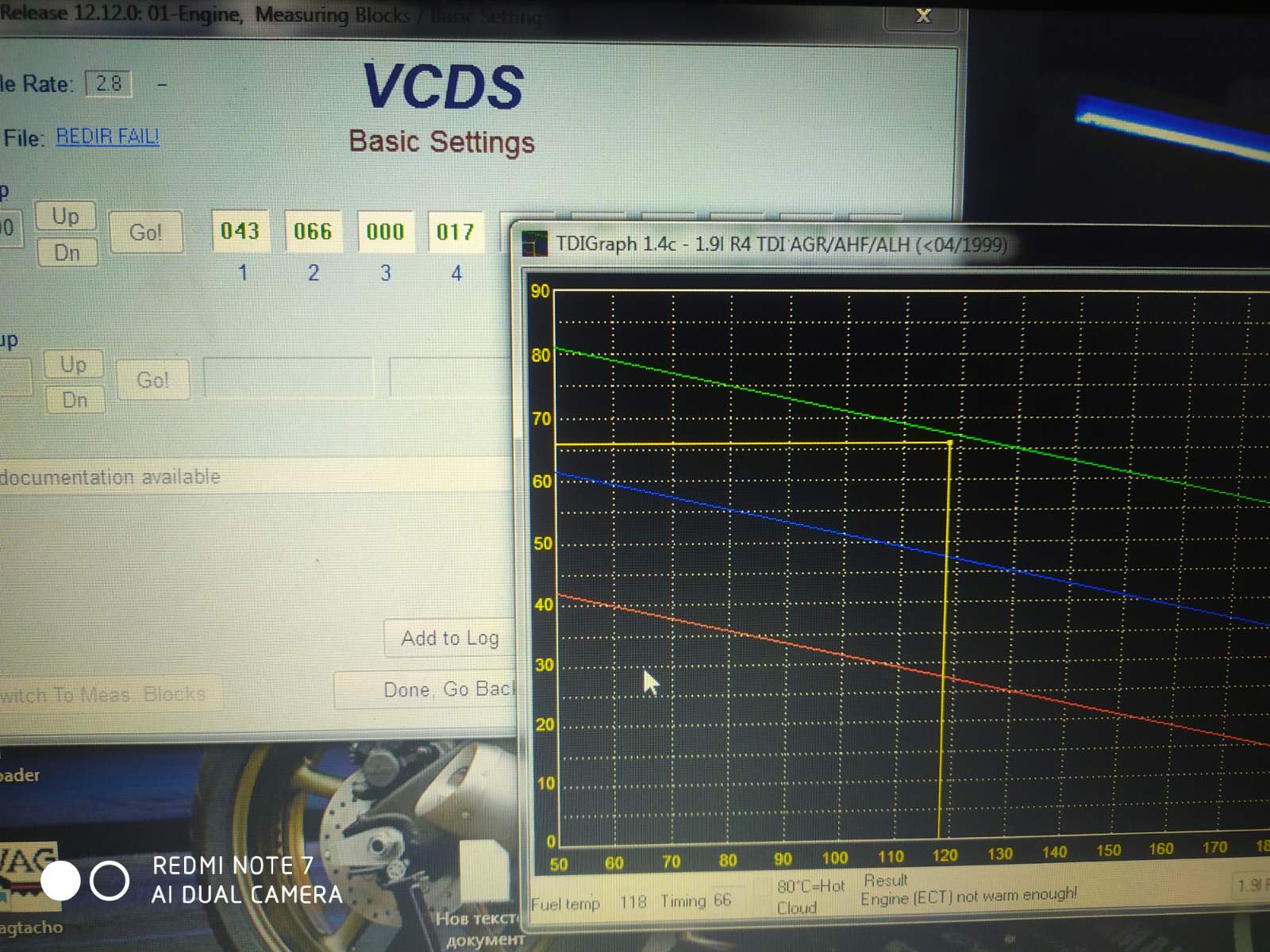 Колега, дизеловия двигател е ALH 90, ASV 110, AHF 110. Ако имаш в предвид първите два, на група 000 втори прозорец трябва да показва 50-52 и ще доде на синята линия освен това тези неща се правят на пълно загрял мотор /74гр/ при теб. Има писано много за тези неща потърси.