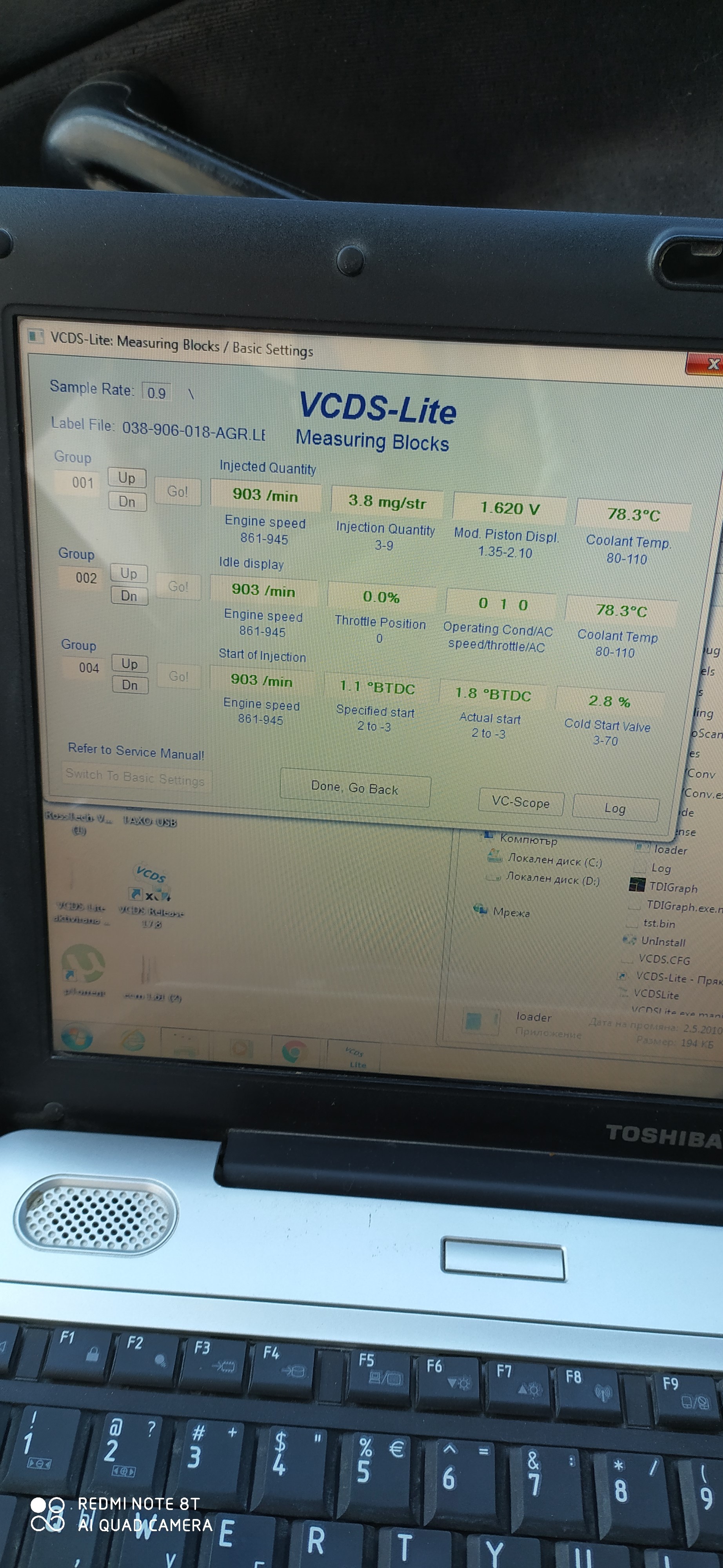 Здравейте.Заиграх се с колата защото имаше проблем с паленето и след настройката вече пали без проблем.Настройката се състоеше от въртене на ГНП чрез vagcom първоначално изобщо не беше в граници беше 0 след настройката паленето е ОК вървежа е добър за разхода не знам не се кара много колата. Прикачвам снимки и моля ако имам грешка някъде ме поправете.Благодаря