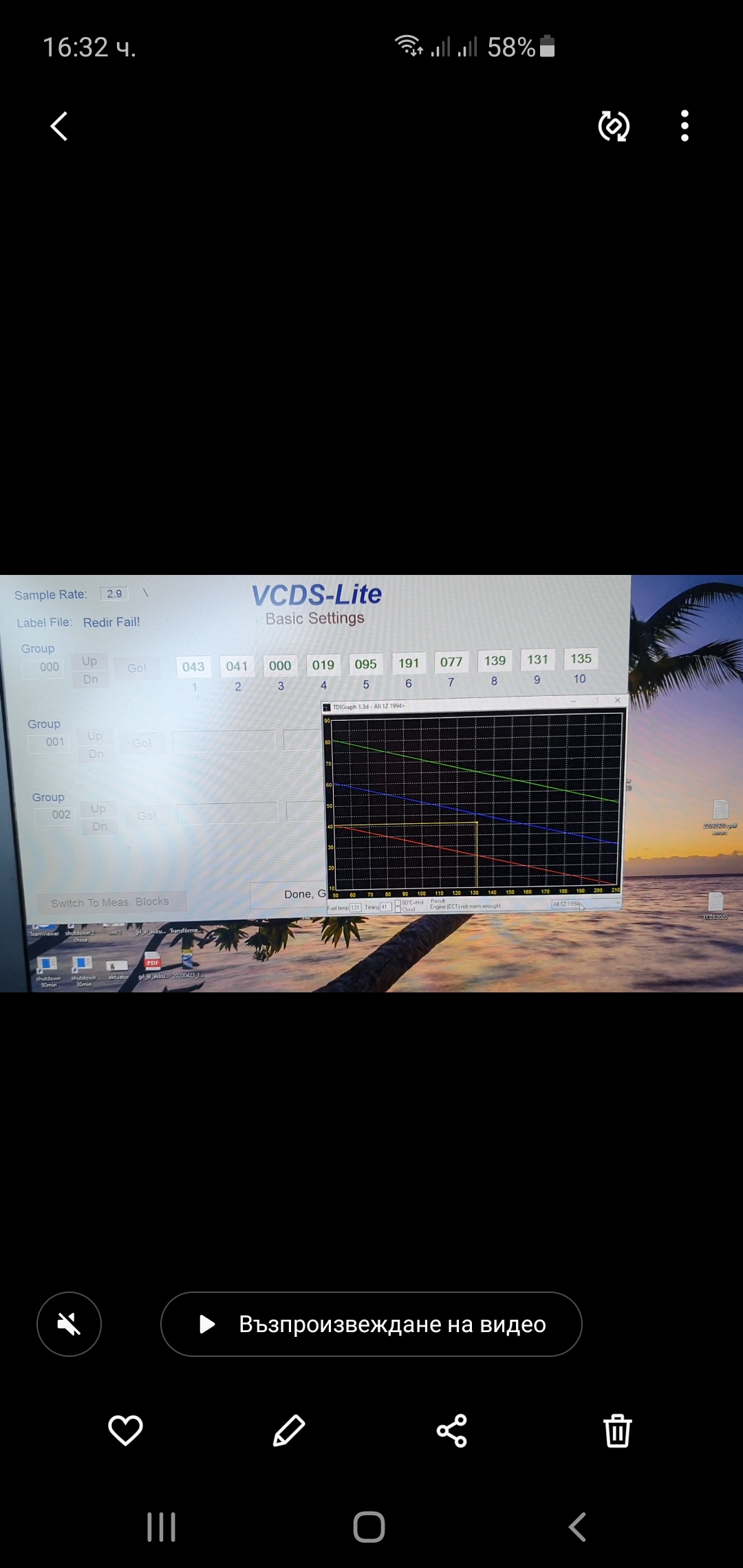 Снимките не се виждат. Но дори с дефектен датчик трябва да пали. Колко оборота вдига когато не пали? Проблем с палене напълно загряла има ли?