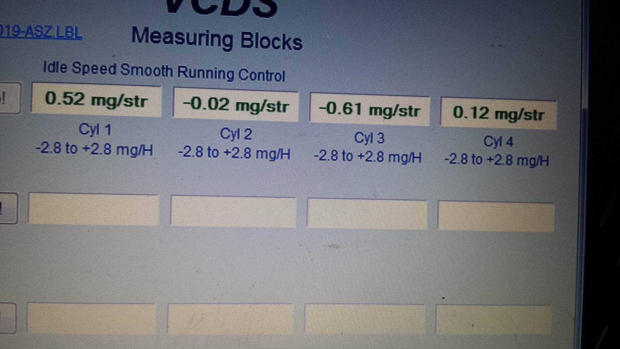 Здравейте , компресията между 25-28 по думи на майстора . Лично на мен това ,,между,, не ми вдъхва доверие . Стойностите на дюзите се увеличават до 1600 оборота , след тази граница замръзват( явно компа не ги отчита ) . Вибрациите най вече се усещат на 5 и 6 скорост при набиране. За да отметна че не е от вътрешно каре и тях ги смених за проба .А за пушеци и за палене колата няма проблем и никакви грешки .
