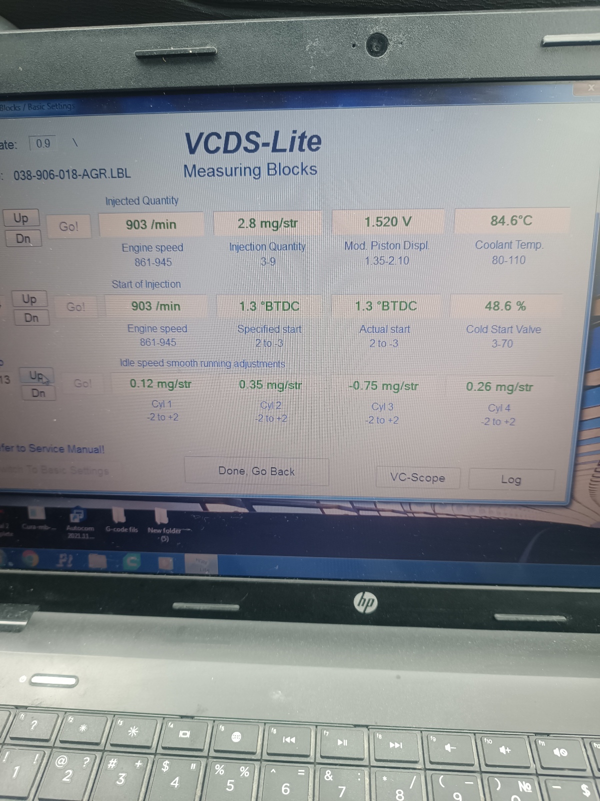 Ами на закъснение е.На измервателните канали се вижда,че е наваксана с 42% работа на авансатора.Но,то и така е добре защото в даден режим компютъра иска закъснение.И още нещо -колата трябва да е загряла и да сложиш отметка долу в квадратчето 80° Hot.