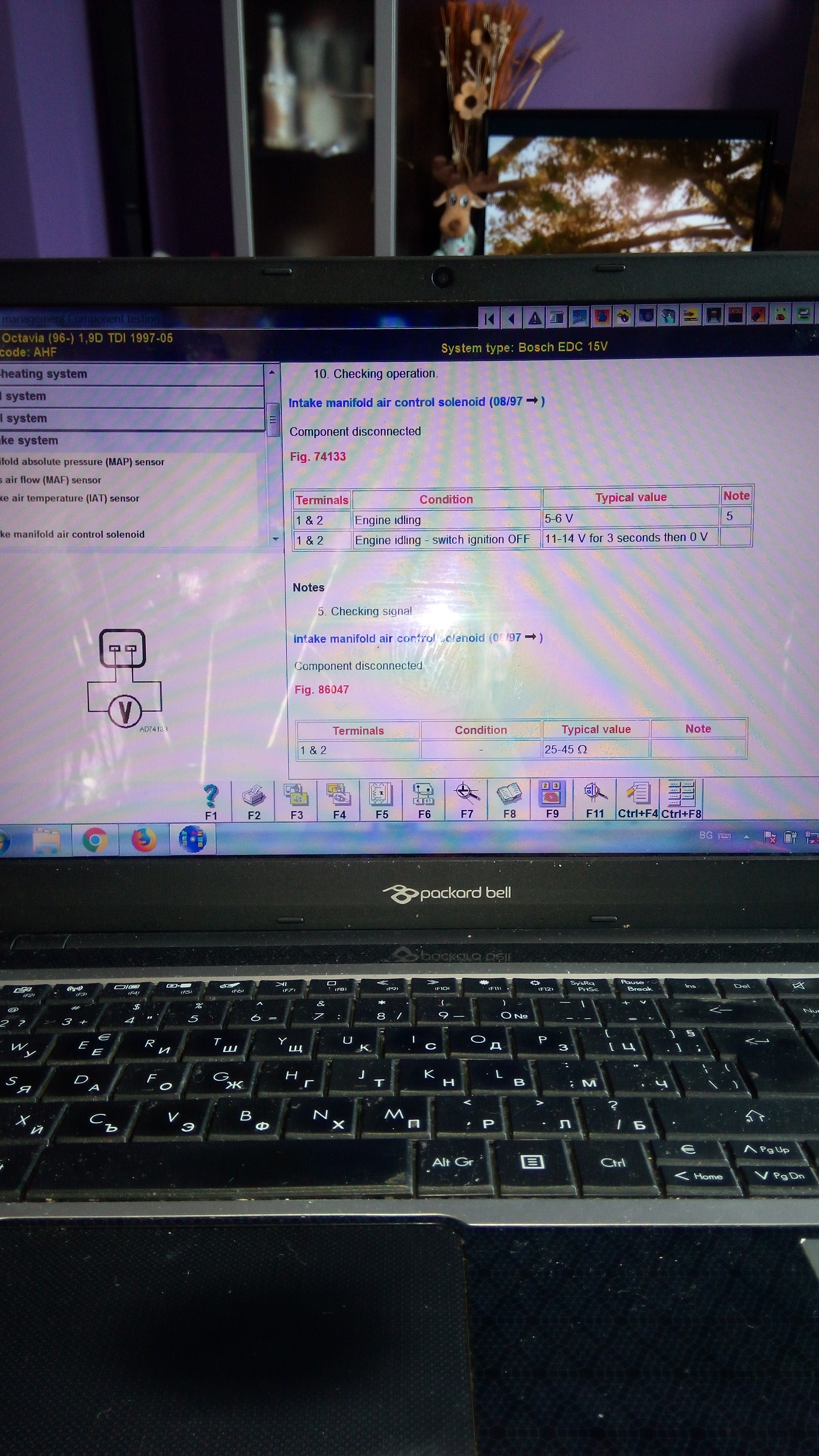 Ето снимките и добавих нещо от ауто датата но като премеря напрежение ми дава 7-8 волта а като се загаси колата не.Няма ги тия 3 секунди на сработване на клапана.На снимката се вижда тръбичката под капачката.Като надуя или засмука през маркучето към клапана,през нея минава въздух.Като му се подаде 12 волта цъка и работи,но като го замеря никакво съпротивление не ми показва.