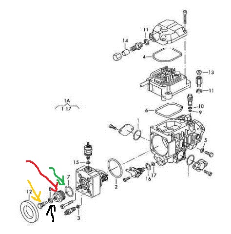 Тече от елемента с червената стрелка.Елемента с номер 7 уплътнение ли е?И за какво служи болтът с жълтата стрелка?