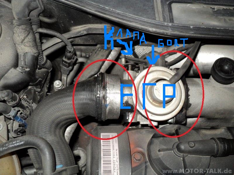 По схемата:сваляш ЕГР,използваш намалението и го изчистваш,че сигурно вътре е гняс голяма,после сваляш Клапата-държи се на 2 малки болтчета!После си избираш единият отвор на тия болтчета,по-добре горното,взимаш пробивен уред с бургия 5 мм. и довършваш дупката дооооо вътре :wink: Следва направа на резба 6мм с метчик и навиване на нов "болт",щуцер с други думи-хем да държи клапата,хем и да минава въздух през него......в крайна сметка-разпробит сърцевината болт :да: Аз използвах медна тръбичка с хубав отвор,жалко че не снимах :roll: