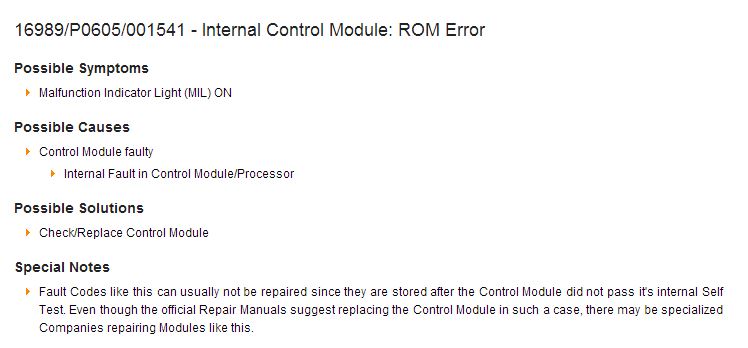 16989 - Internal Control Module: ROM Error