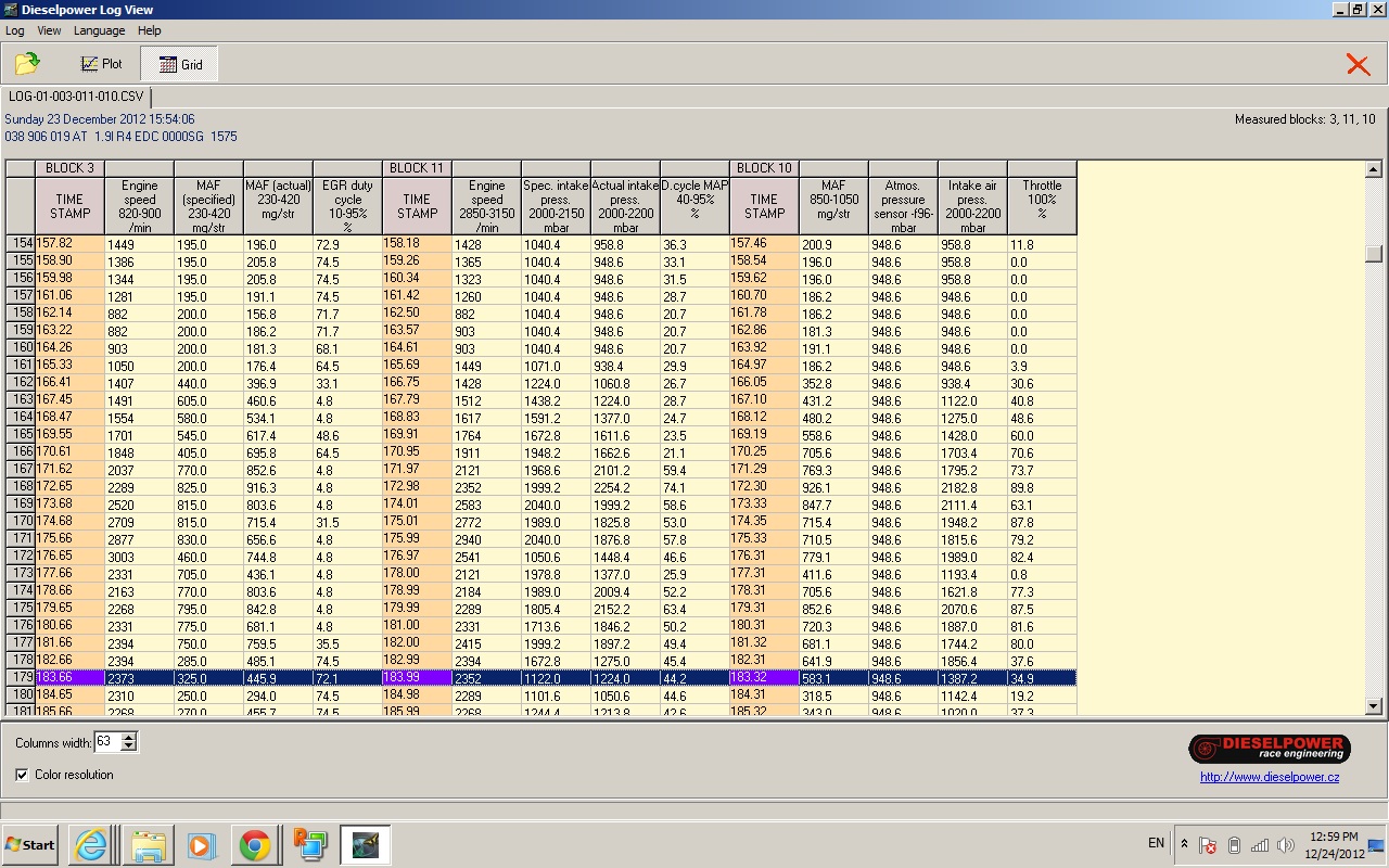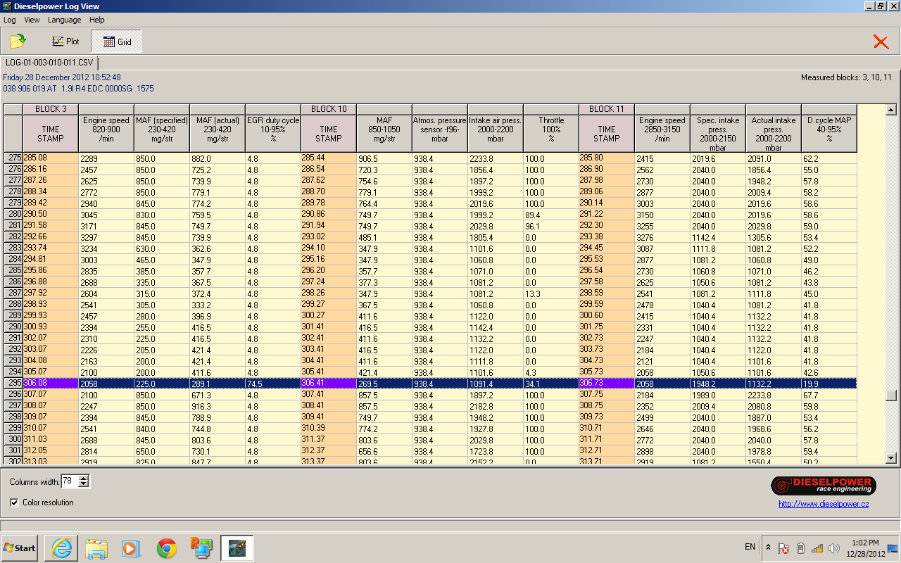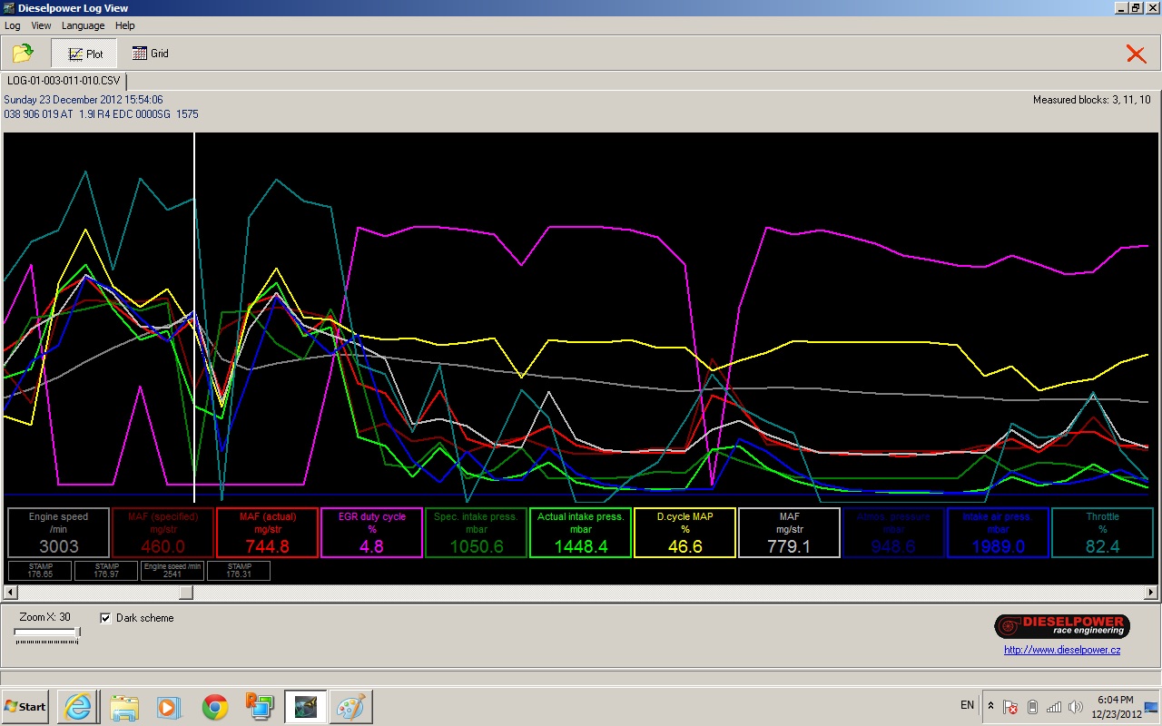 От известно време наблюдавам различно поведение във вървежа на колата, който се изразява в по шумно и мудно набиране и ускорение. Днес успях да направя няколко лога на работата на ЕГР и дебитомера и искам да се консултирам за стойностите им с по-компонентни от мен.