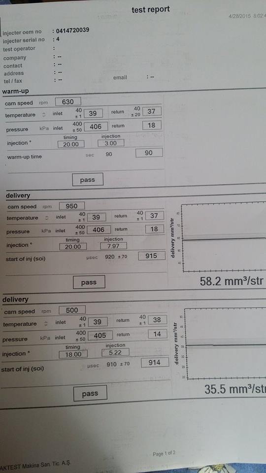 Здравейте имах проблем с 2 от диузите на 3 и 4 цилиндар пращтах ги за рециклиране в благоевград и след връщането ми пратиха и някъв тест на самите диузи може ли някои да ми каже дали тестовете са добри след самия регулаж на диузите.