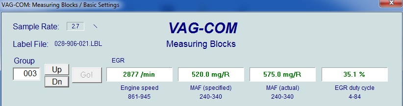 По-добре е да провериш дебитомера в движение. При тия обороти егр трябва да е затворен според мен.